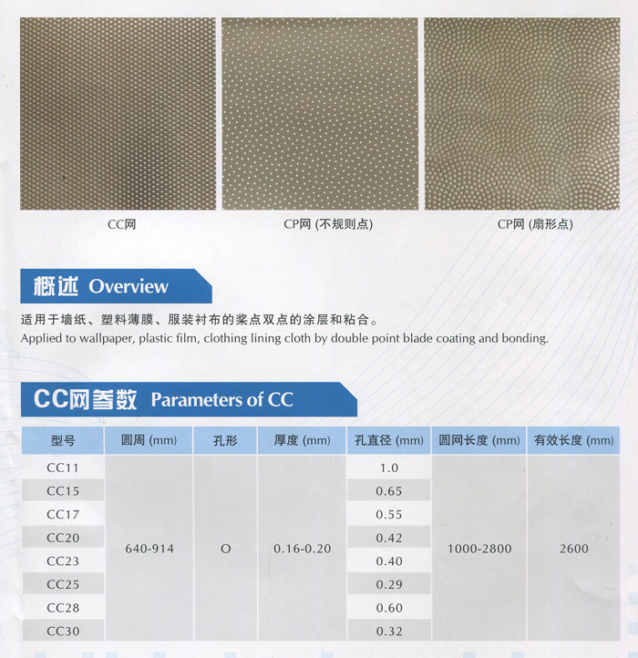 服裝襯布用漿點雙點圓網